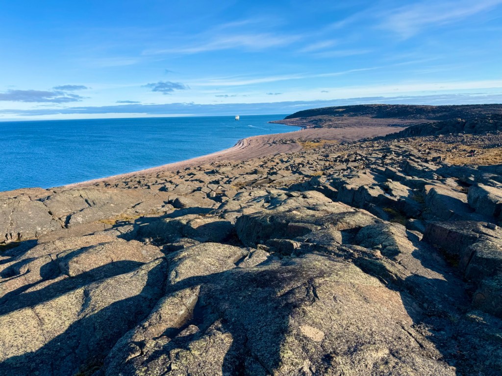 The NWP landscapes feel ancient and lived-in: a vast tundra palette, low-slung hills, ragged coastlines, and mountains that can rise suddenly and sternly, depending on your segment (Baffin Island can look ferocious; other areas feel spacious and soft). The beauty is often in scale and nuance with lichen colors on stone, delicate wildflowers in brief summer, the long amber twilight and the way fog reshapes distance.