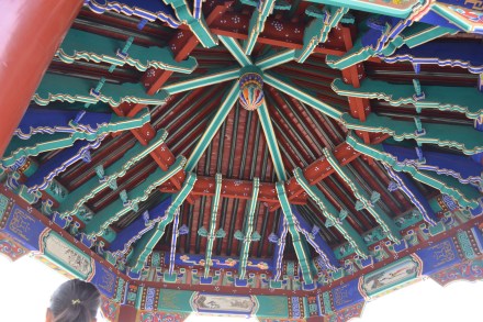 Walking South a few blocks is Ritan Park. As this was a Sunday, everyone was out either practicing their tai chi (to a variety of musical genres – including country), vogueing, or showing off their birds’ songs. The park  includes The Temple of the Sun, a very picturesque small lake and a hill topped with a shady pagoda offering great views of the city.