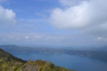 Start your day at Parking spot #1 off Route 52; the latter winds its way past the West rim of the caldera. The views of the lake and mountains are stunning. Then take the Mount Mashu trail and head East. On the way you will get great views of the surrounding mountains, as well as the birch forests rising out of the endless bamboo groves. It takes about 2.5 hours to get to the peak of the mountain, with the last 400 m being steep but manageable – just don’t look to your right and definitely not to your left. The views of the lake are terrific – the views into the secondary caldera of the mountain are terrifying.