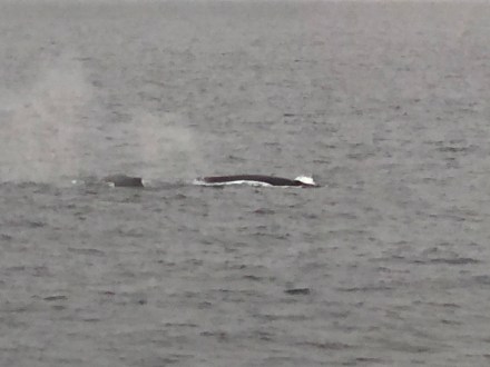 We saw the blows from a few live whales today – naturalist said Humpbacks – but no sightings of tails or breaches, as yet. BREAKING NEWS – Two Humpbacks just breached….no photo though…