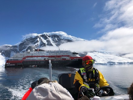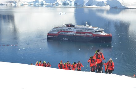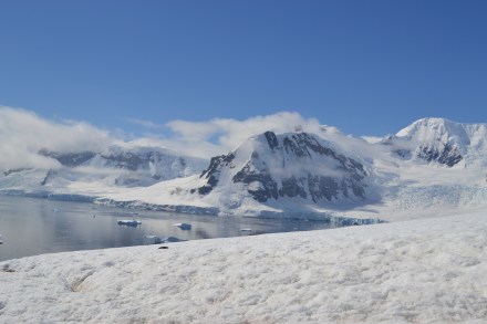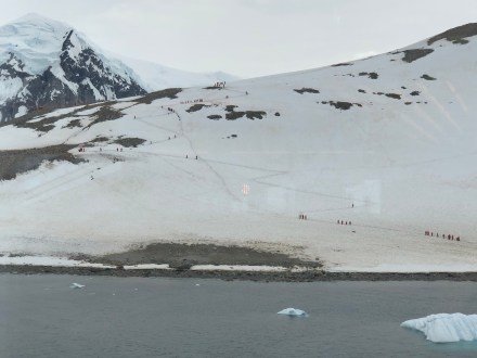 Our zodiac landing was far easier today. However, the walk up/down the snow covered hill to see the Gentoo Penguins was quite challenging – worth it though for the magnificent views!