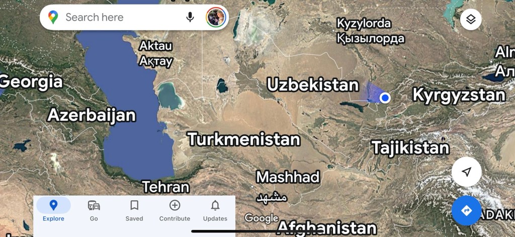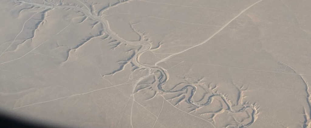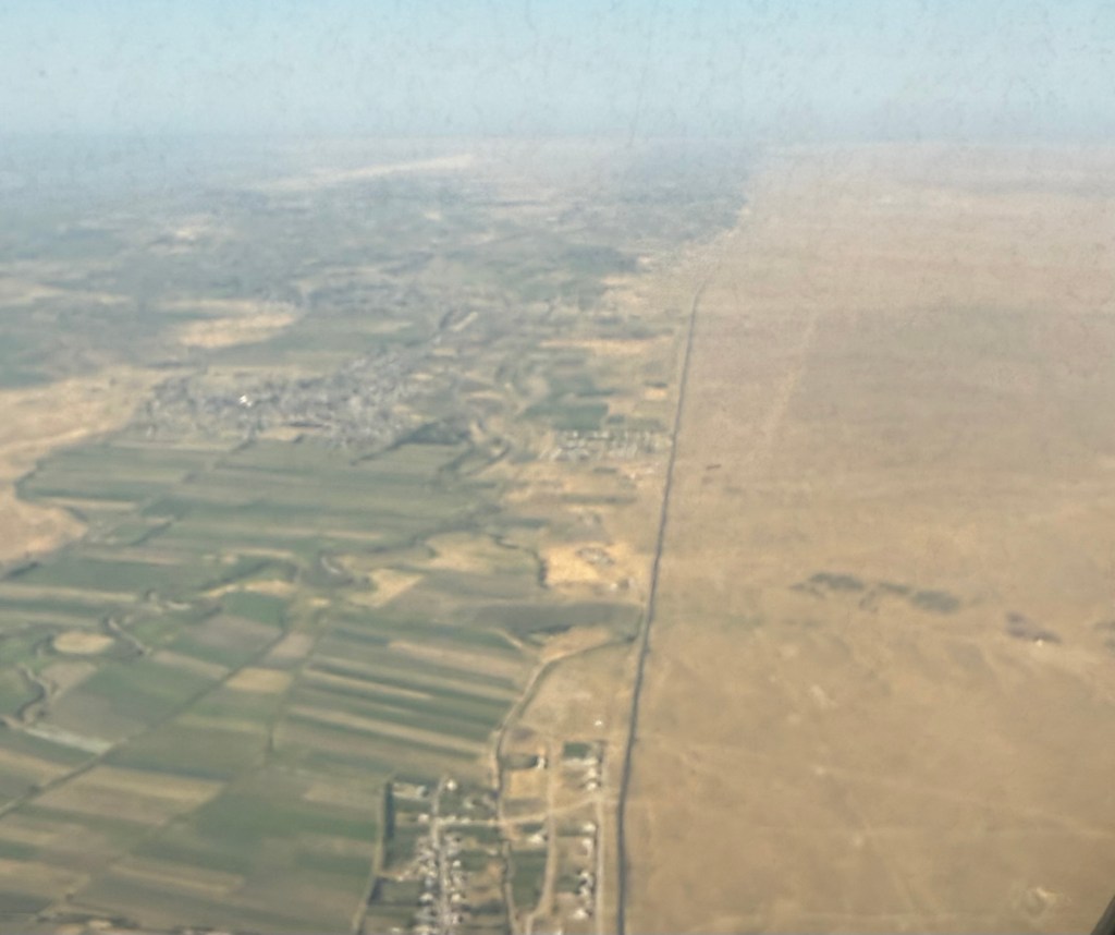 Approximately half of the flight duration from Istanbul to Tashkent was in daylight. Following the Caspian Sea, the landscape below transformed into an expanse of desert, persisting until the outskirts of Tashkent, where verdant areas began to emerge.