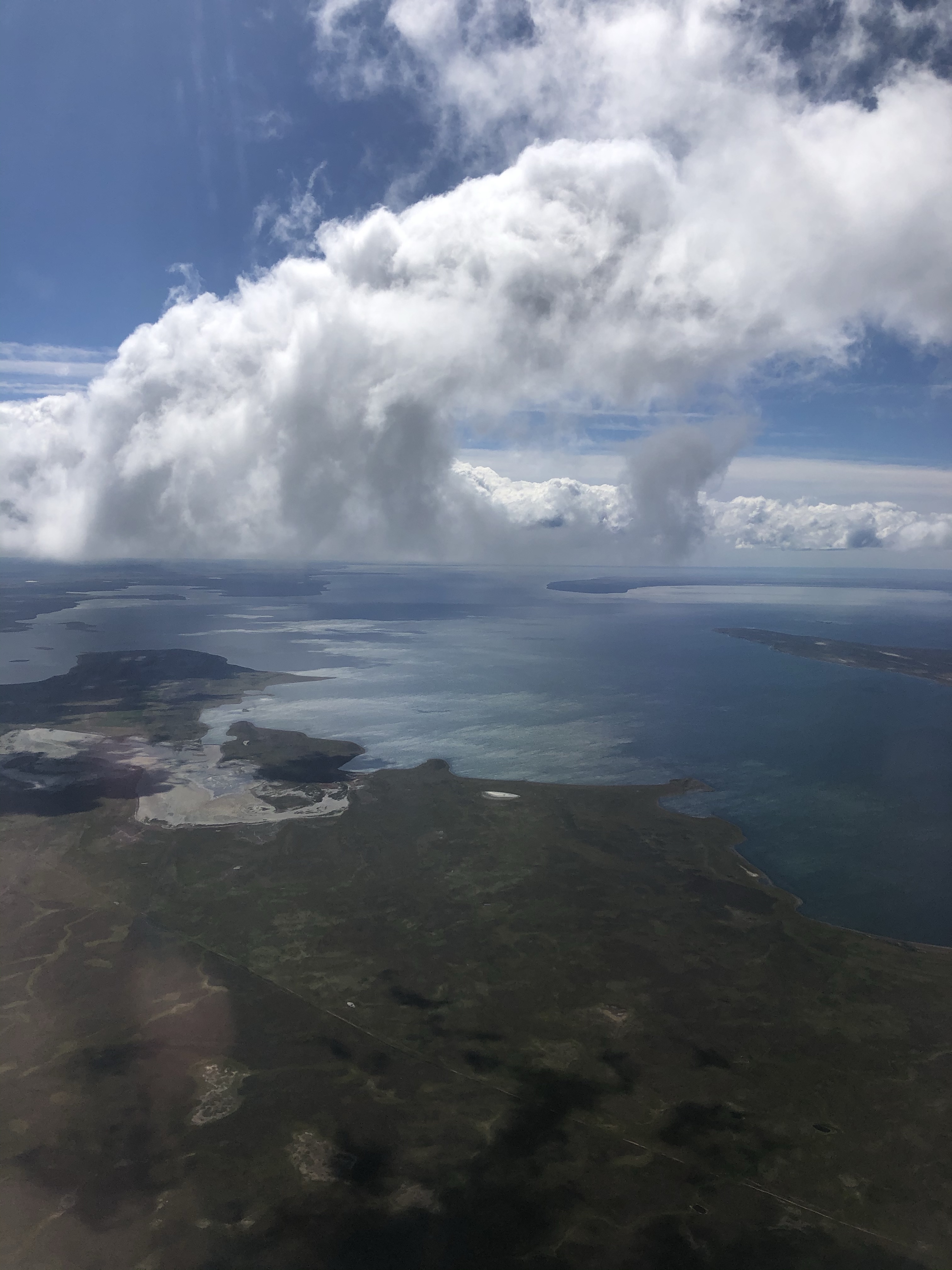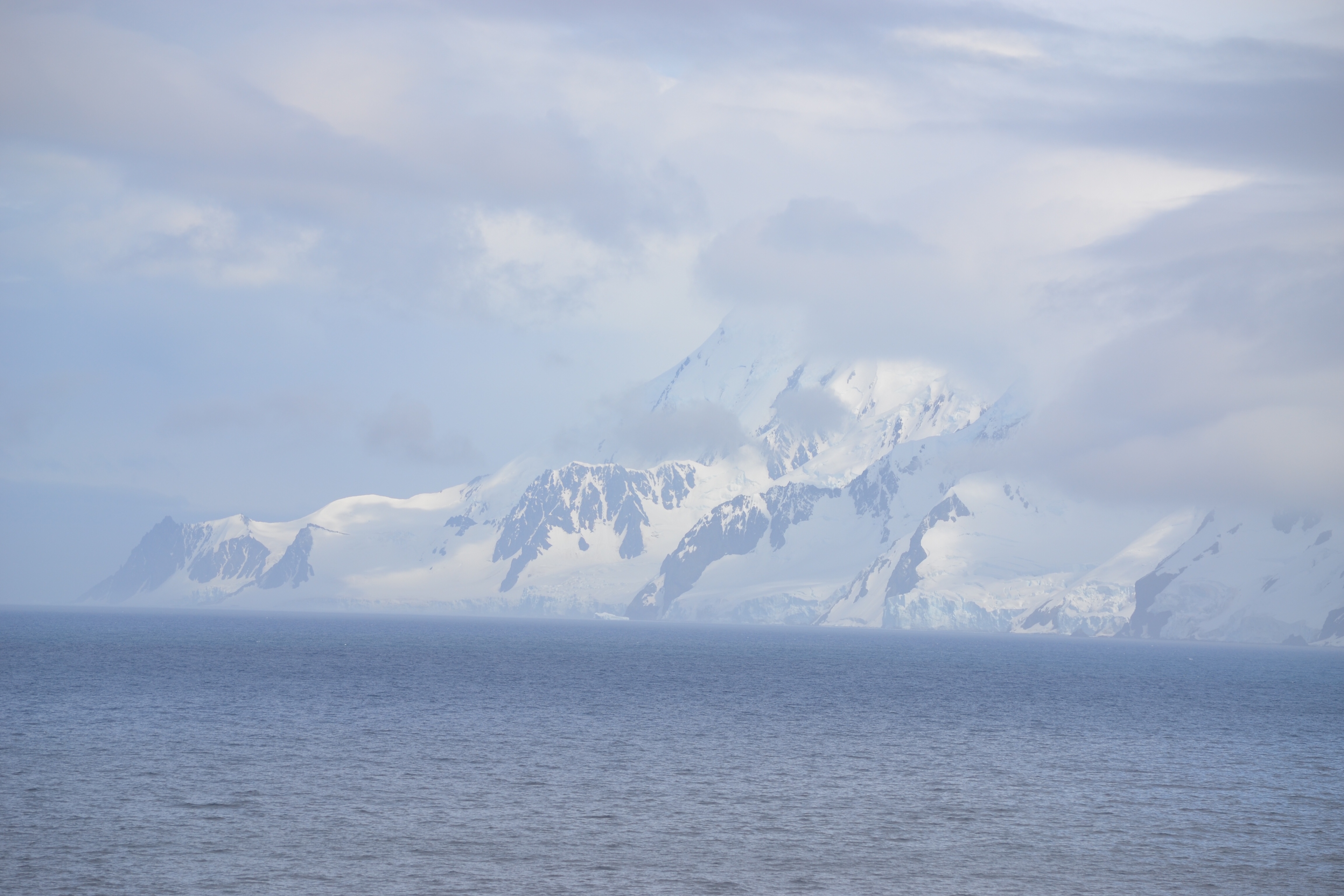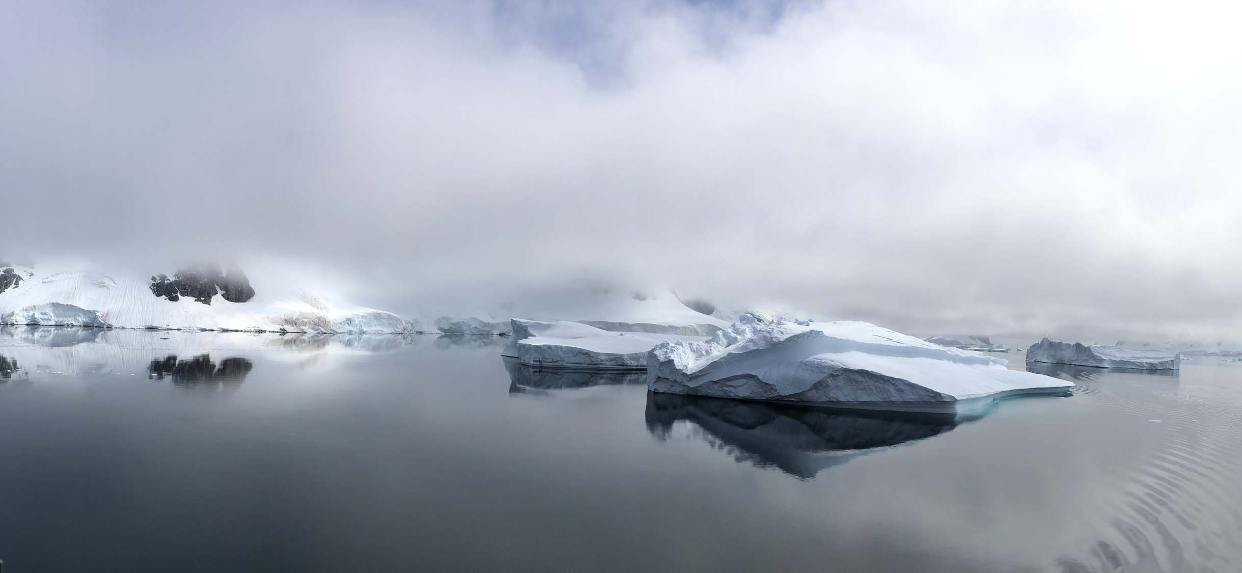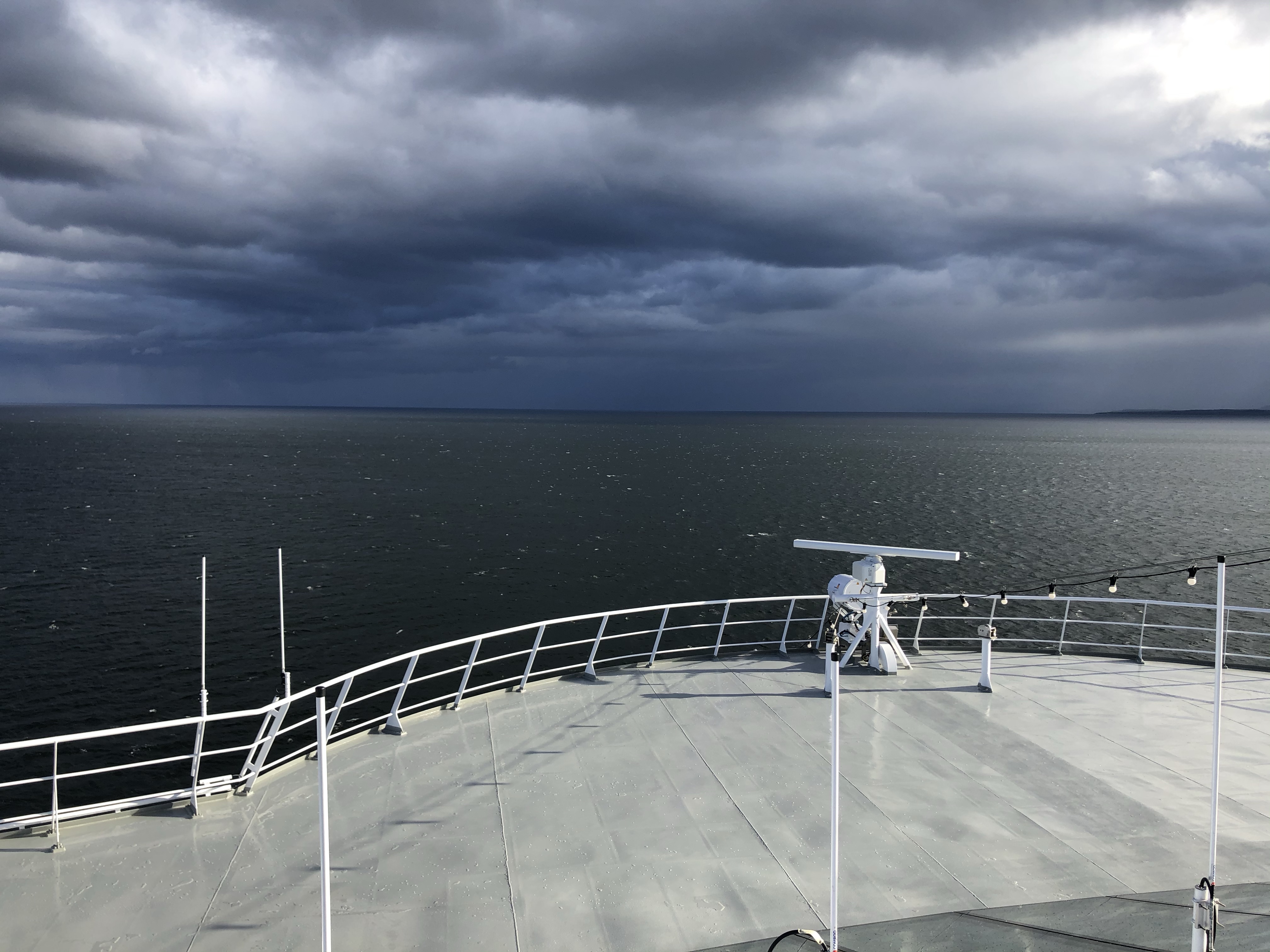 During the night, our cruise from Nuuk to Evighedfjord encountered rough seas in the Labrador Sea. However, upon entering the fjord in the morning, the sea became significantly calmer, although mist and light rain persisted.