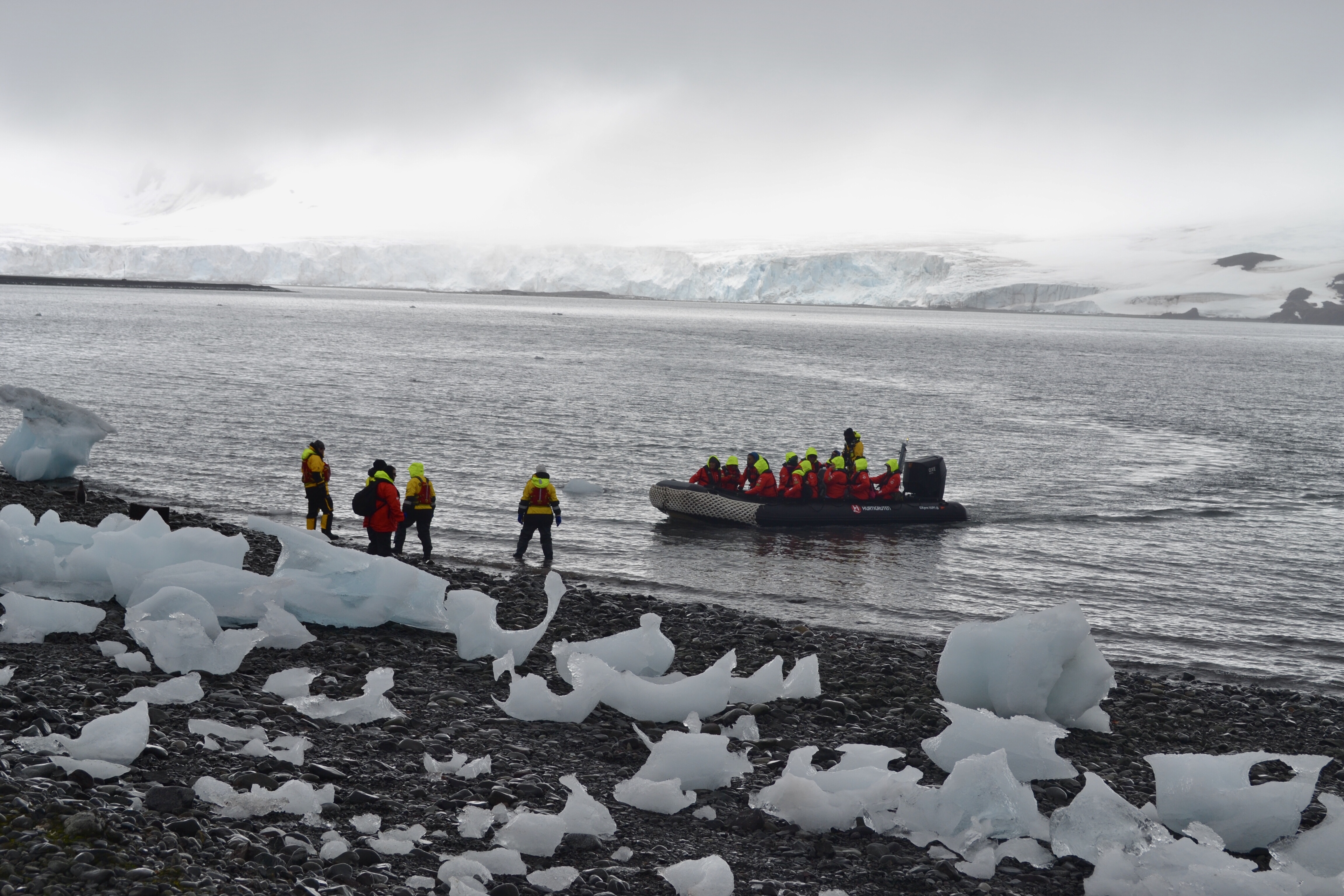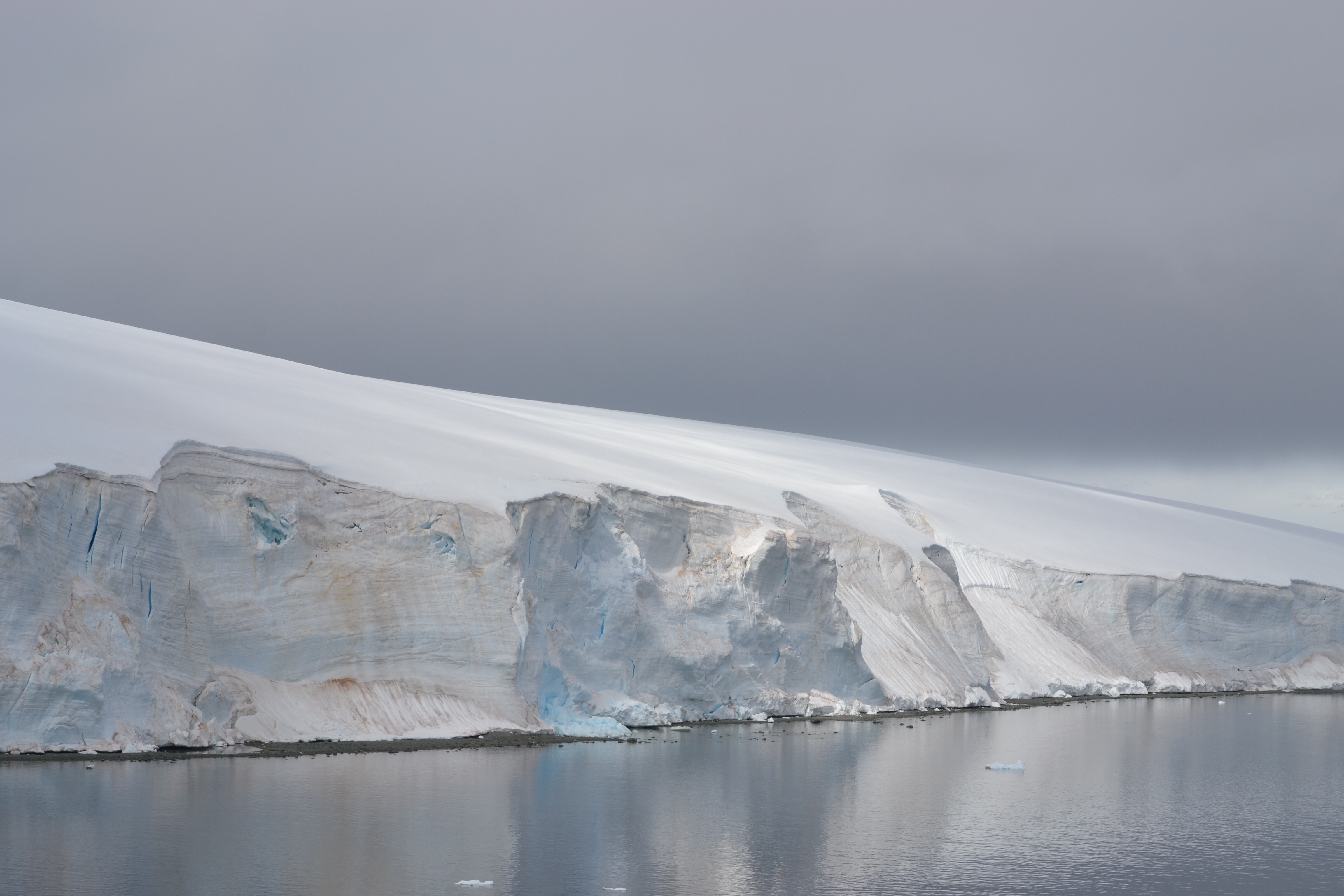 My group, Bearded Seals, embarked on a Zodiac excursion to the face of the glacier, where we observed a striking display of blue hues, comprising both transparent and compacted blue ice. The glacier face stands approximately 50 meters high and was actively calving, producing a loud roar and splash that were audible and visible from a distance of 500 meters.