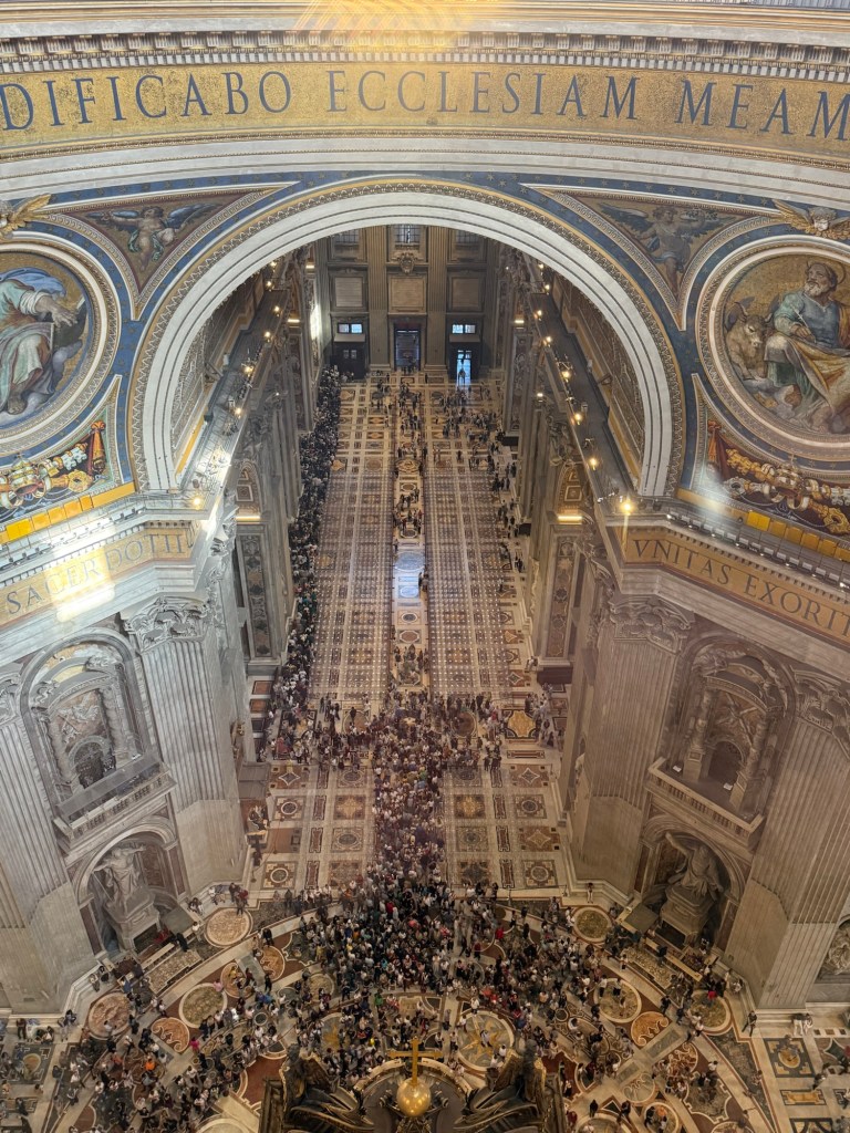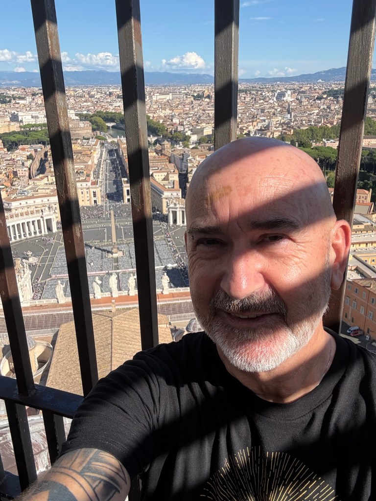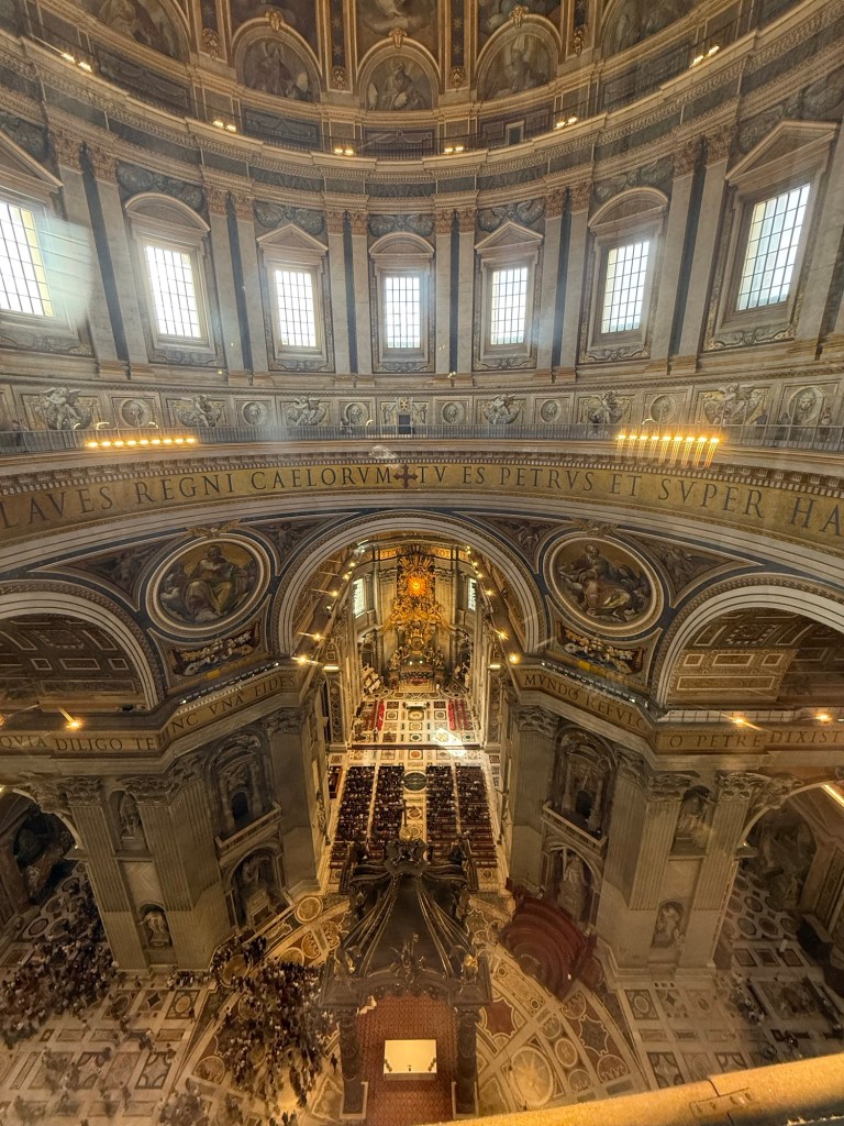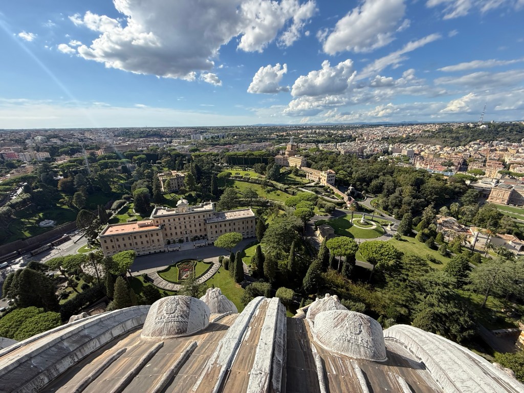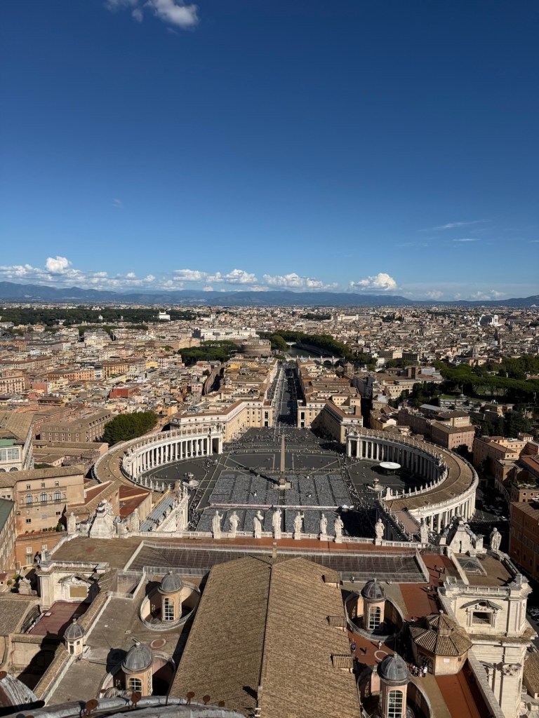 I then ascended within the dome, an unsettling experience due to the angled walkway, to reach the top for breathtaking views of St Peter’s Square and the Vatican Gardens.
