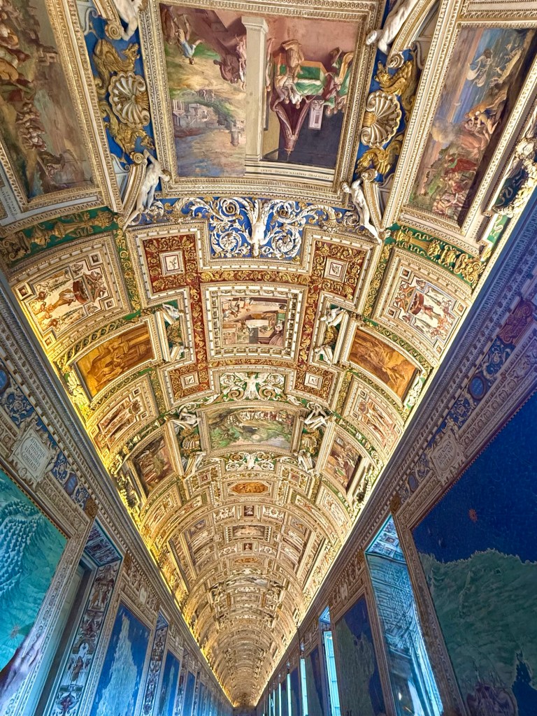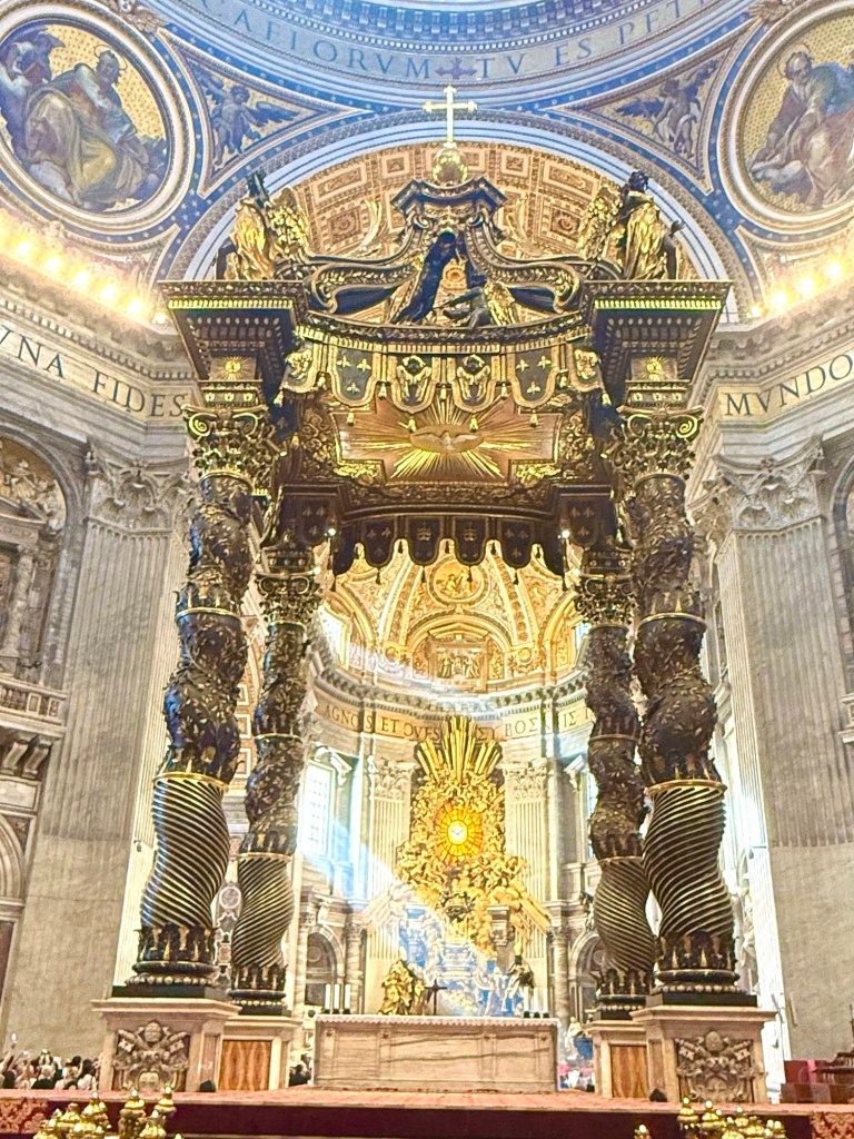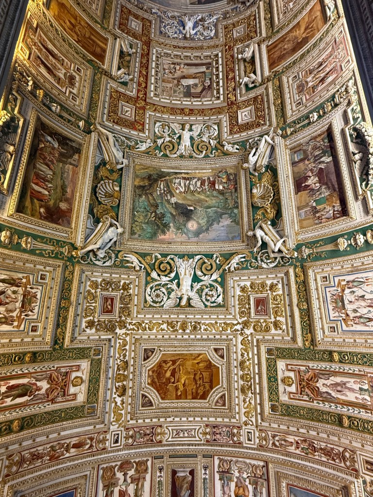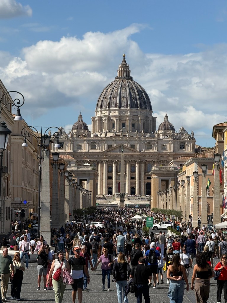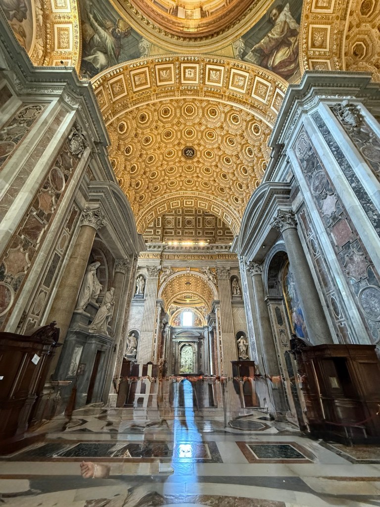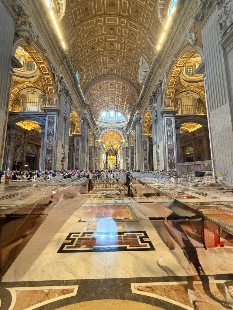 I then ascended within the dome, an unsettling experience due to the angled walkway, to reach the top for breathtaking views of St Peter’s Square and the Vatican Gardens.