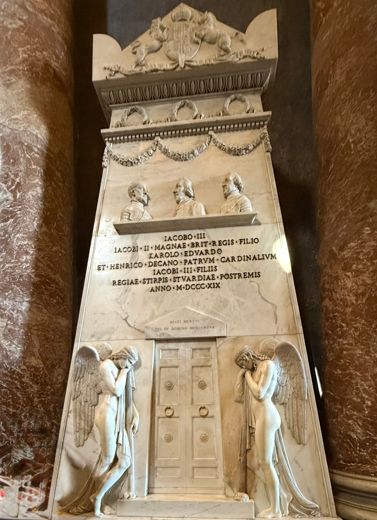 Scottish Connection: The tombs of three Jacobite pretenders—James Stewart (the Old Pretender), Charles Edward Stewart (Bonnie Prince Charlie), and Henry Benedict Stewart—are located here, serving as their final resting place.