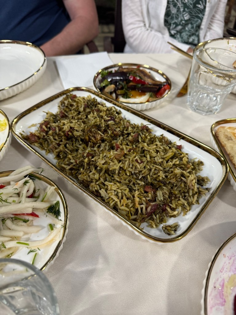 Bukhara evening activity was a visit to a prominent Jewish household where we listened to stories and had an extravagant meal featuring green Plov followed by dancing and of course wodka.
