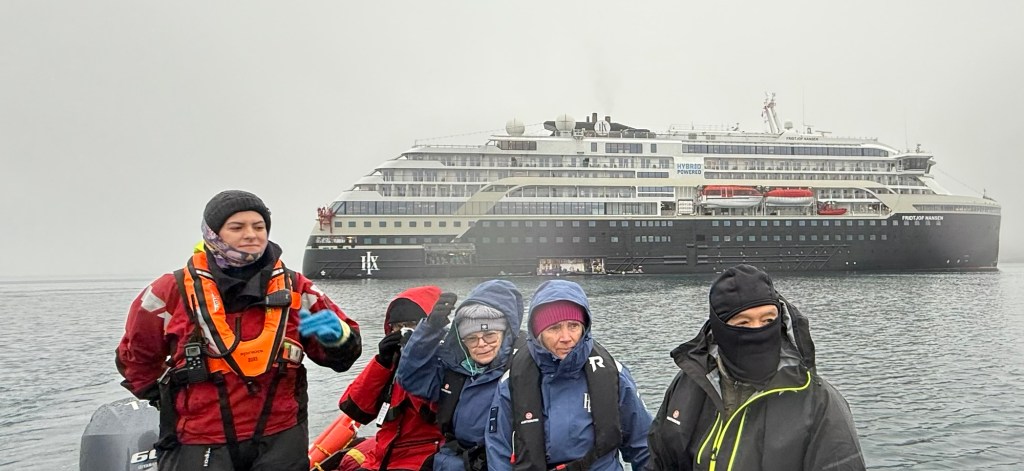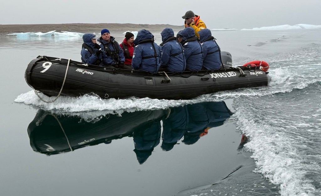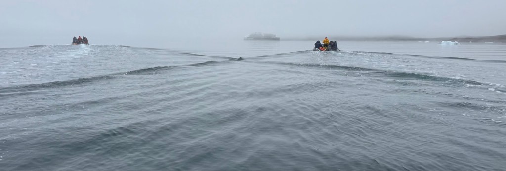 In the afternoon, we deployed the Zodiacs and attempted to reach 75°N – we seemed to get very close but grounded twice while investigating some barnacle geese and had to abort.