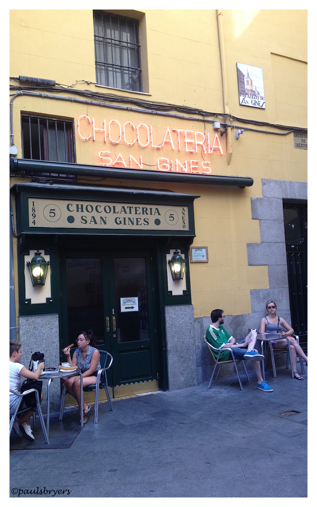 We visited Chocolateria San Gines in Madrid, Spain in August of 2014. The churros (like long donuts) and hot chocolate combination was amazing http://www.chocolateriasangines.com/Chocolateria_San_Gines/Welcome_to_San_Gines.html