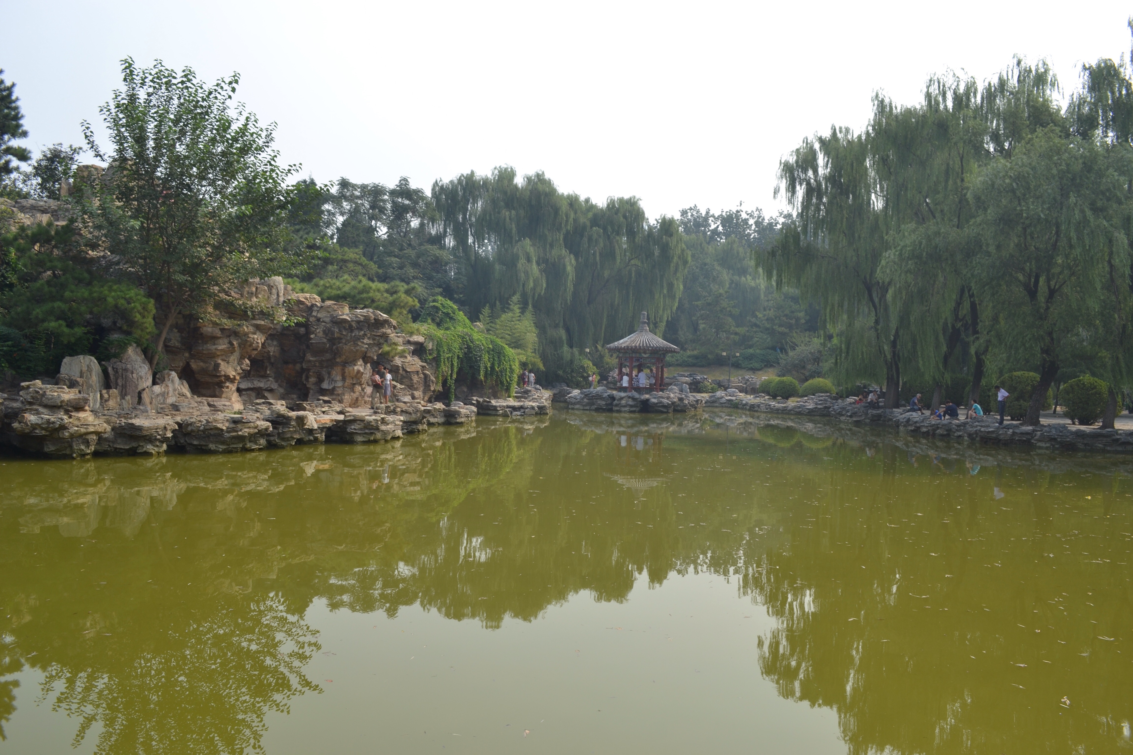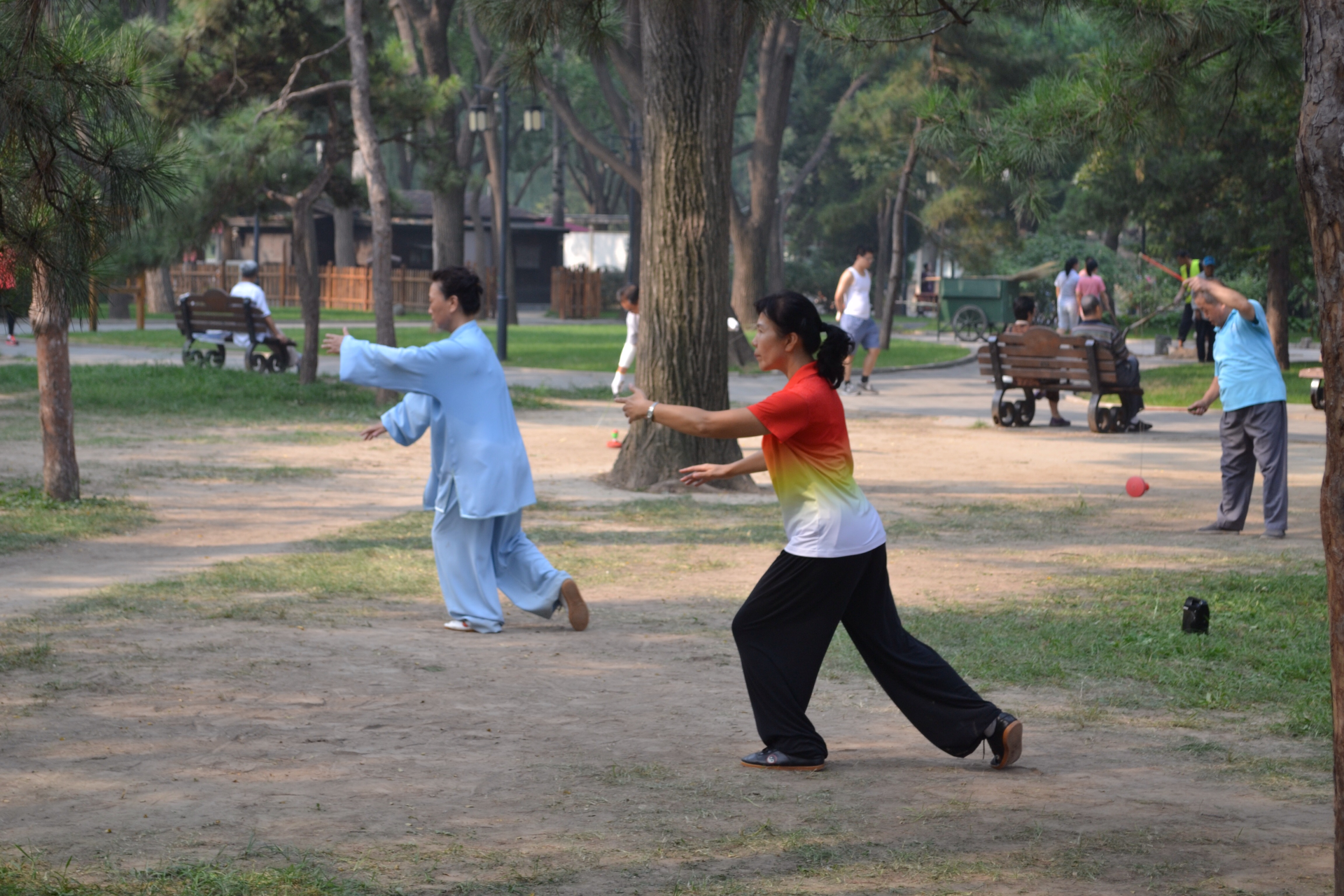 Walking South a few blocks is Ritan Park. As this was a Sunday, everyone was out either practicing their tai chi (to a variety of musical genres – including country), vogueing, or showing off their birds’ songs. The park  includes The Temple of the Sun, a very picturesque small lake and a hill topped with a shady pagoda offering great views of the city.
