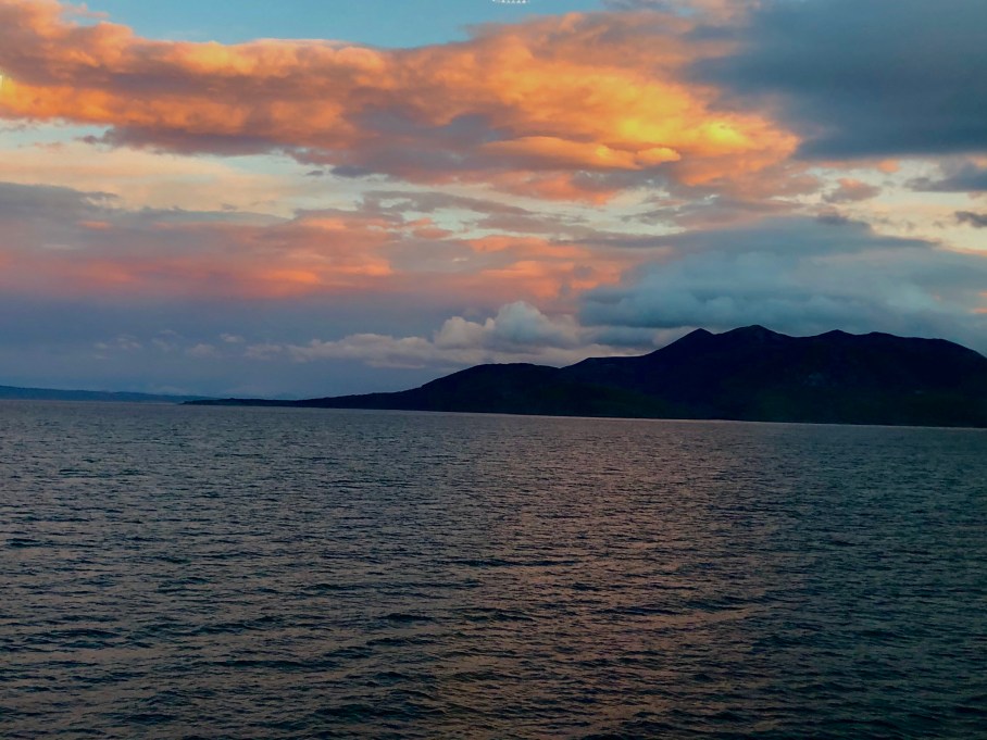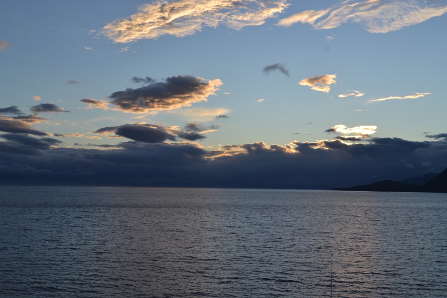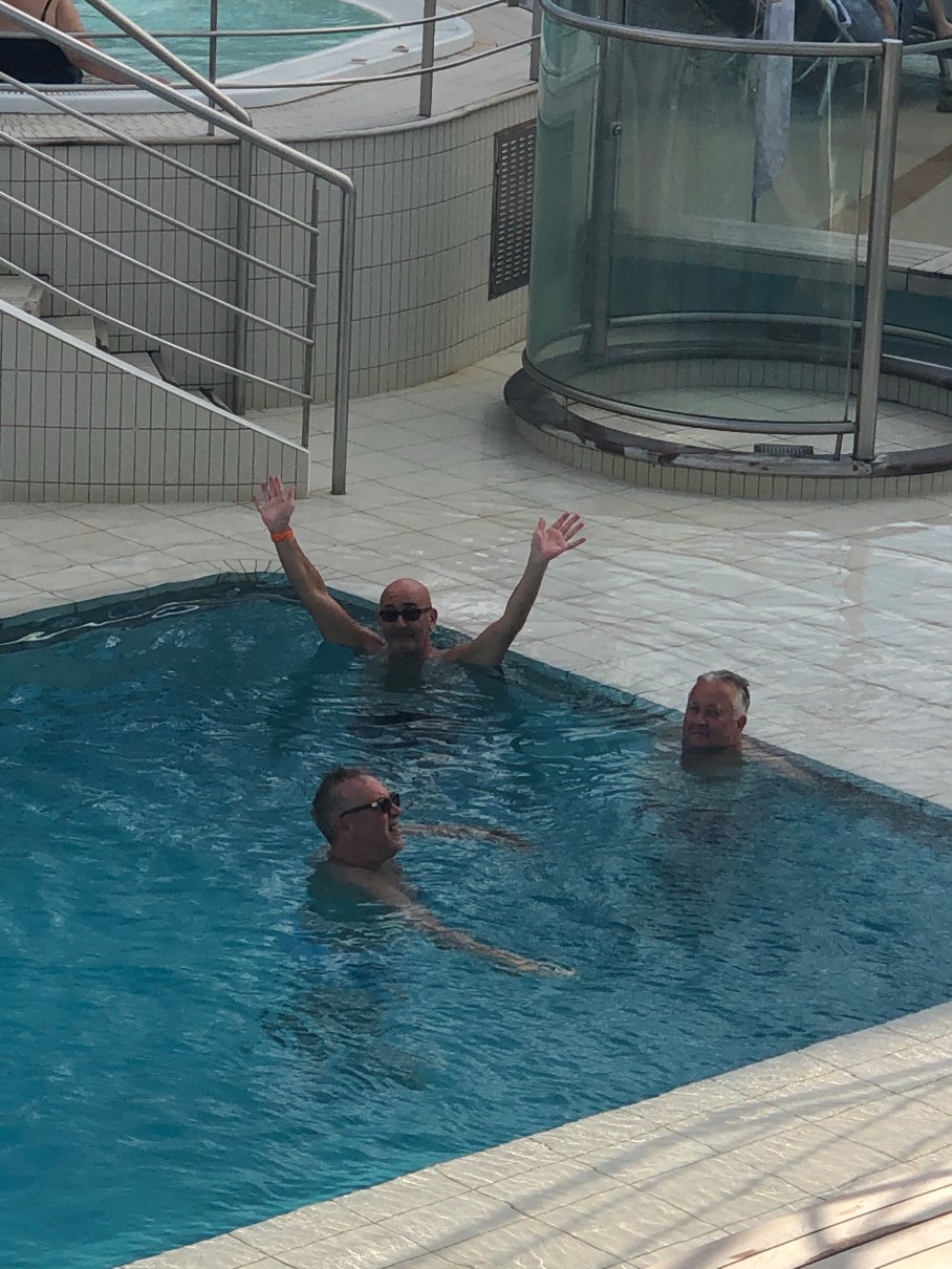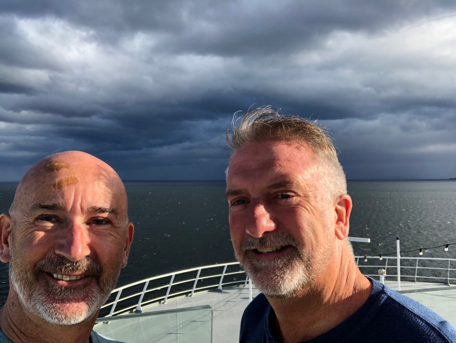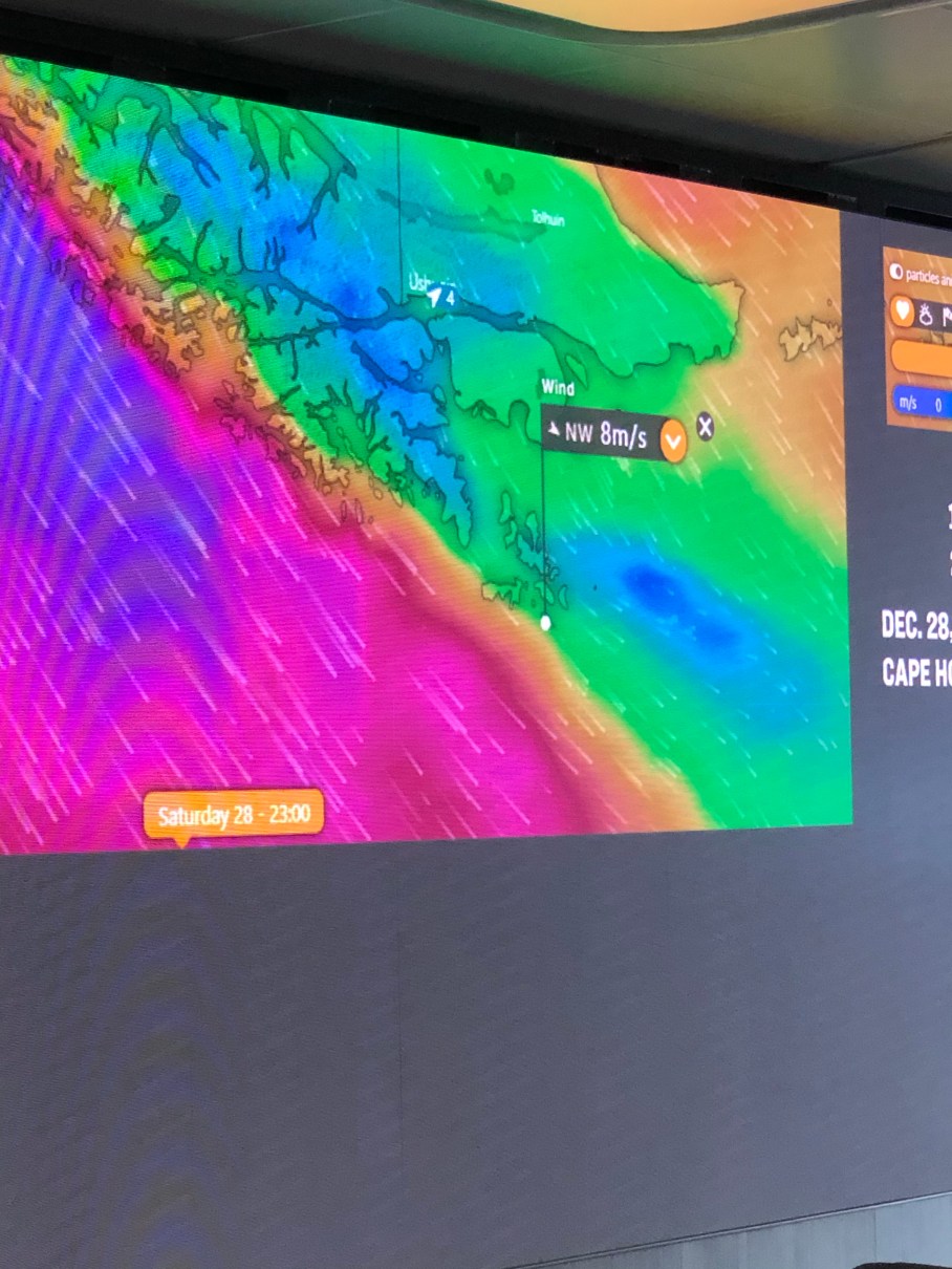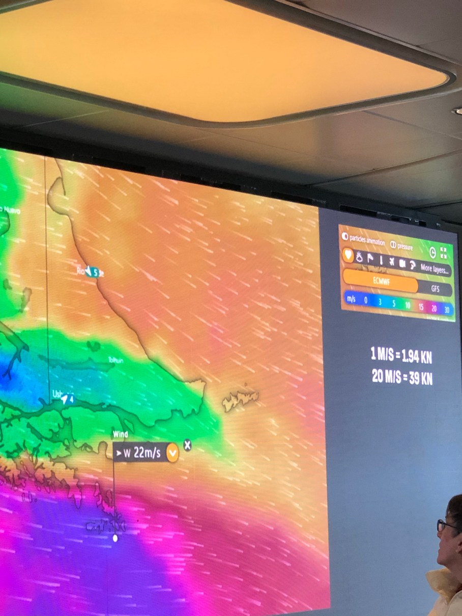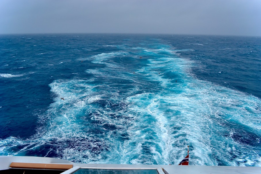 Although we are ahead of the storm, the Captain says we are still getting some 30 foot waves which are making us shake, rattle and roll (a bit). I don’t think it’s bad at all.