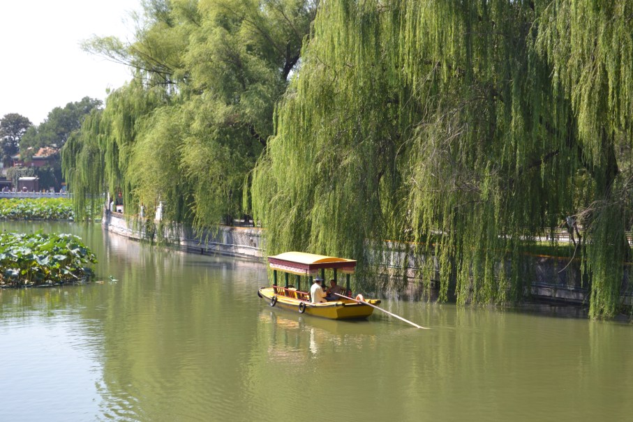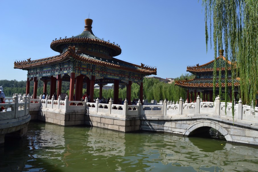 Walking South a few blocks is Ritan Park. As this was a Sunday, everyone was out either practicing their tai chi (to a variety of musical genres – including country), vogueing, or showing off their birds’ songs. The park includes The Temple of the Sun, a very picturesque small lake and a hill topped with a shady pagoda offering great views of the city.