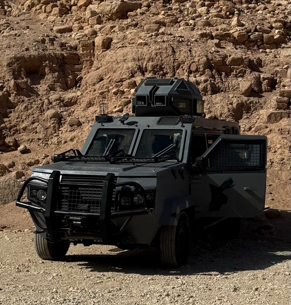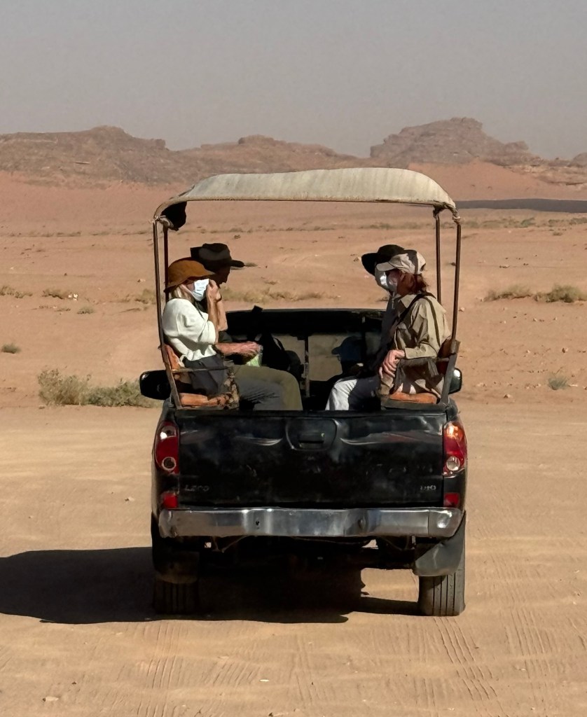 Ha, ha – not really, this is a Jordanian Security JeepYes, this is one of our jeeps…Being sand blastedRocking along on a Jeep and a prayer Our driver, Number One