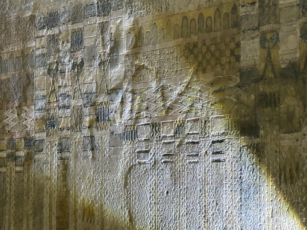 I walked down int Steps Pyramid , crouched like a wee Scottish gnome, to the burial chamber. Initially, it was not very impressive until the guide illuminated the walls with his torch, revealing vibrant colors and reliefs that were otherwise hidden.