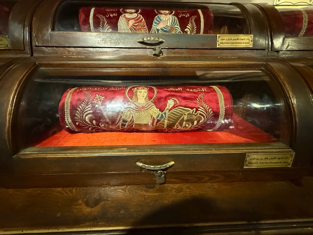 The church houses a total of 110 icons, including the “Coptic Mona Lisa,” which dates back to the 8th century A.D. and depicts Virgin Mary, Jesus Christ, and John the Baptist. As per Mona Lisa, those eyes follow you and remind you of your many sins.