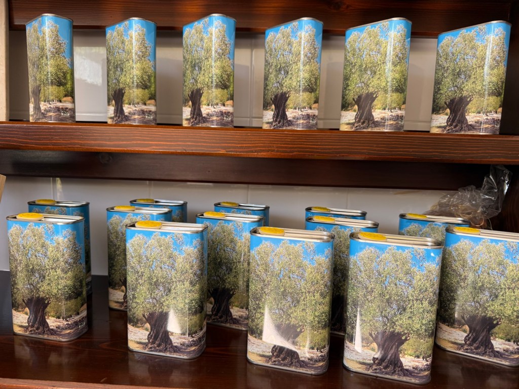 The olive bushes on this particular farm are several hundred years old, necessitating the use of specialized tools for harvesting. The oil exhibited the characteristic just-cut-lawn aroma and a distinct peppery flavor.